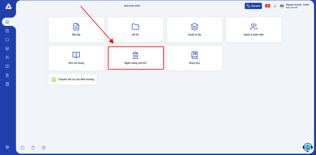 Bước 1: Tại Màn hình chính, chọn mục “Ngân hàng câu hỏi”