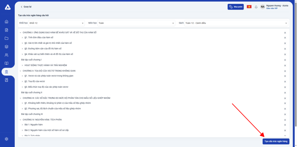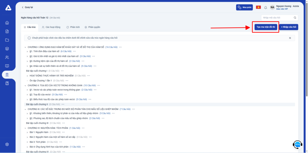 Bước 1: Ấn “Tạo ma trận đề thi”