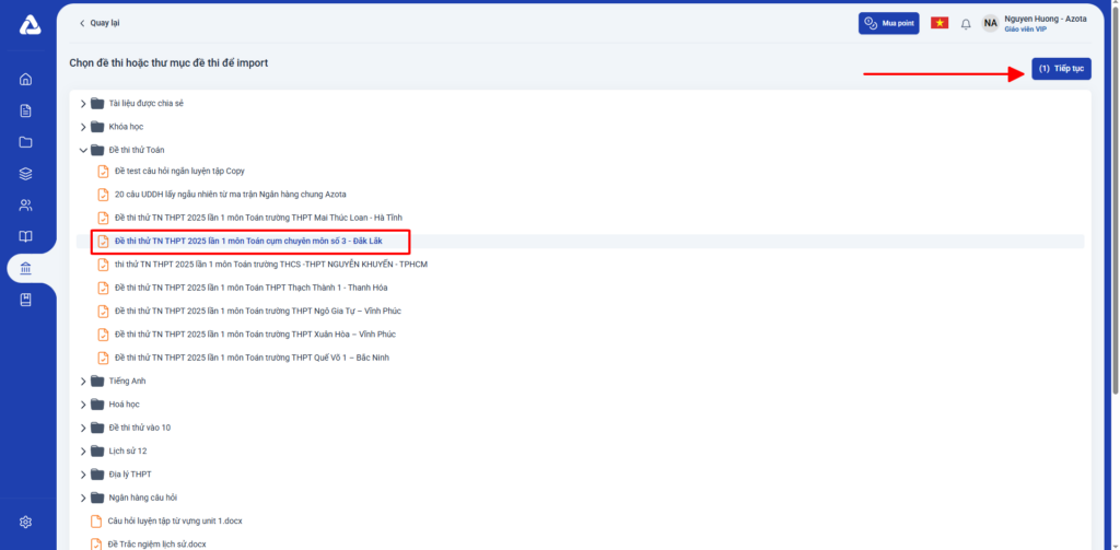 Bước 4: Chọn các câu hỏi muốn đưa vào ngân hàng